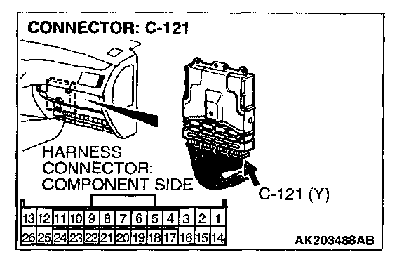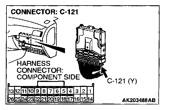 STEP 2. Measure the output voltage at ECM harness side connector C-121.