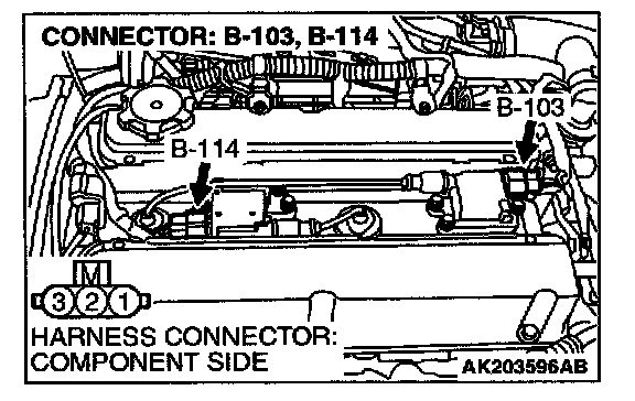1. Connect the timing light to terminal No. 1 of the ignition coil connectors B-103 or B-114, in order.