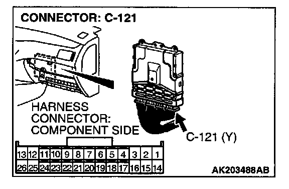 c. Check the harness wire between injector connector B-18 (terminal No. 2) and ECM connector C-121 (terminal No. 2) at No.3 cylinder.