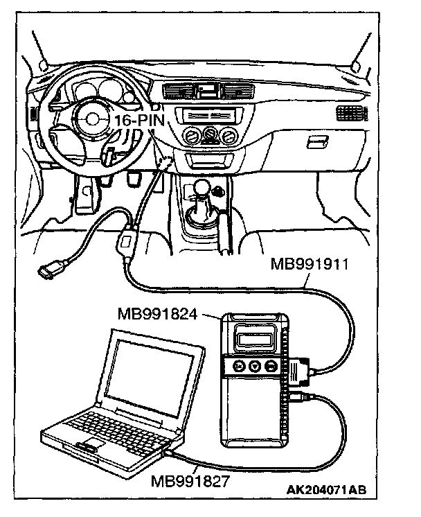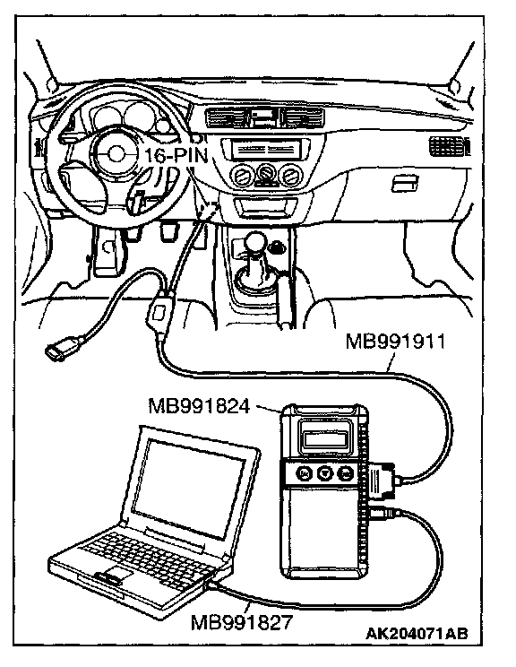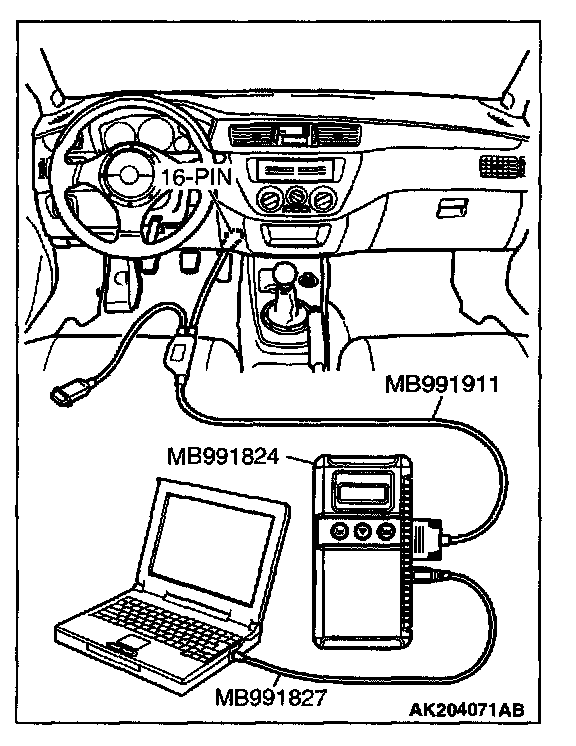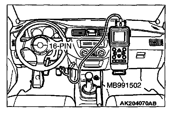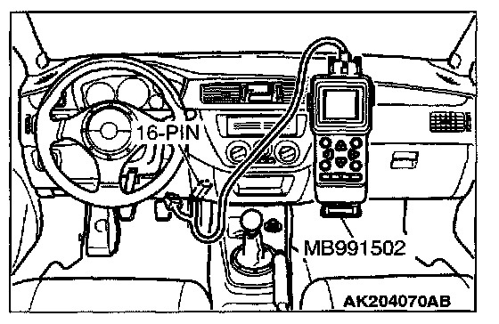1. Connect scan tool MB991502 or MB991958 to the data link connector.
