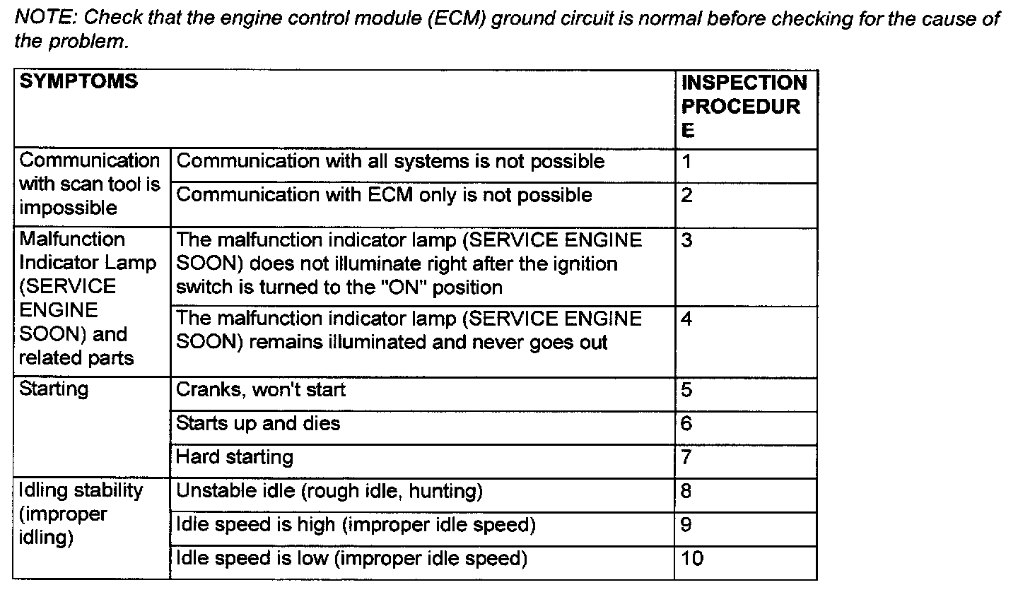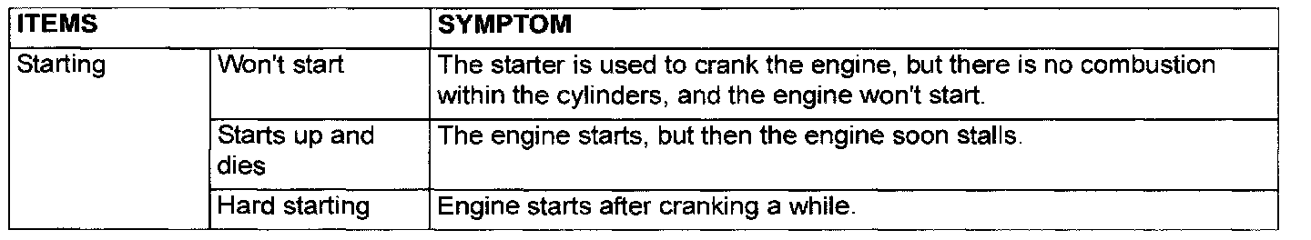 Problem Symptoms Table (For Your Information) Part 1: