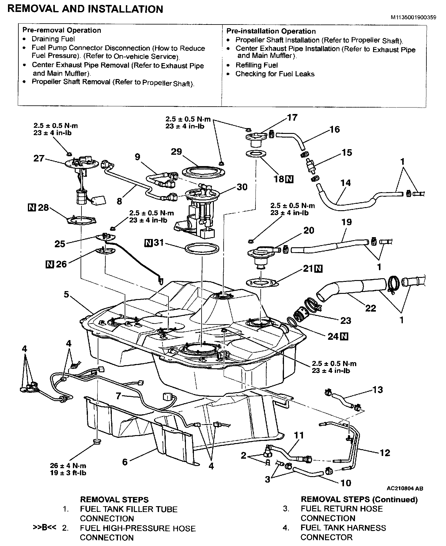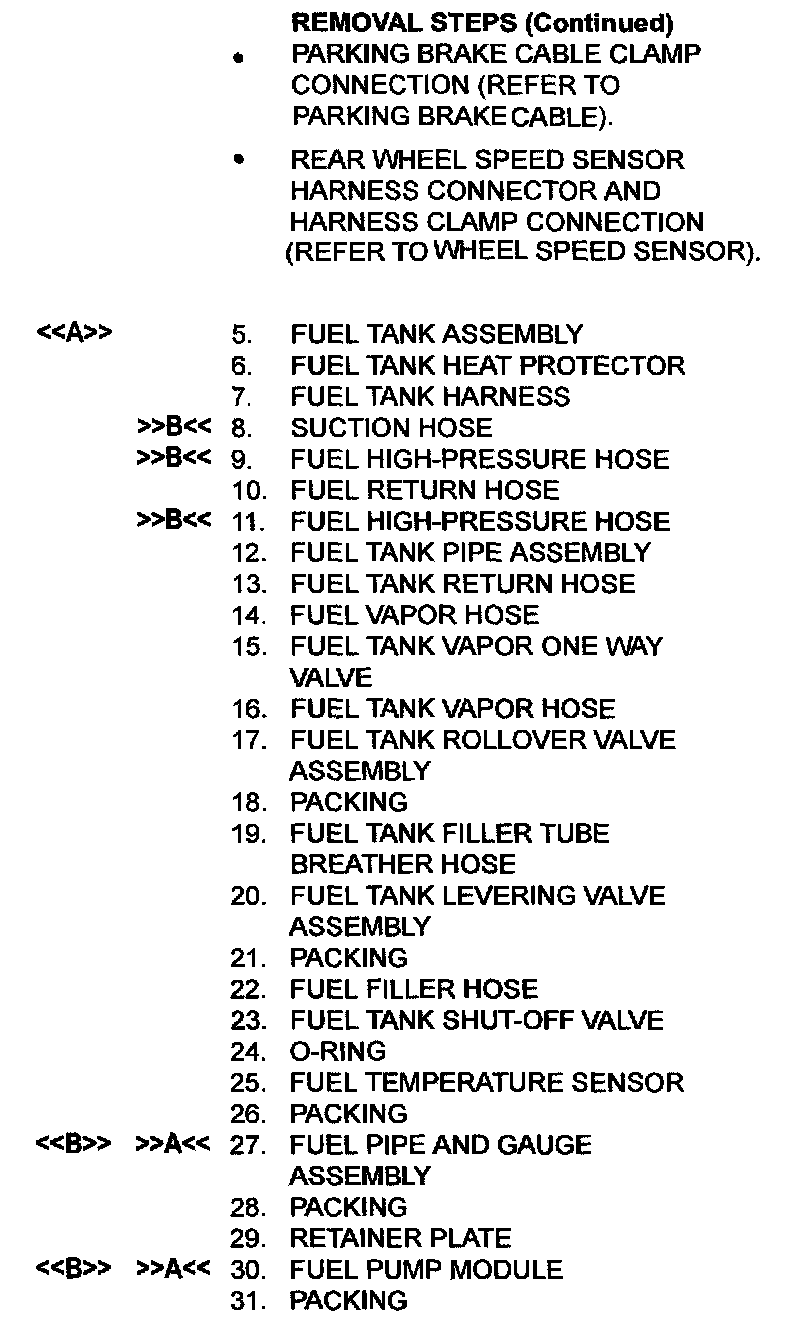 <> FUEL PIPE AND GAUGE ASSEMBLY/FUEL PUMP MODULE REMOVAL