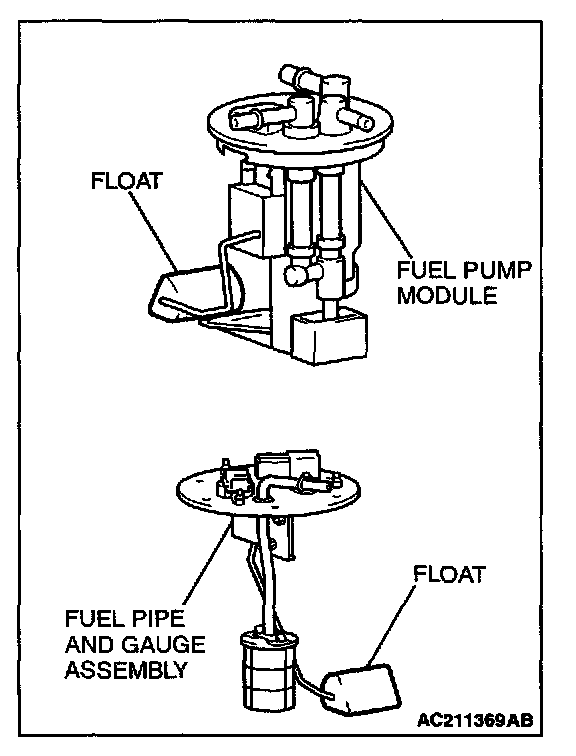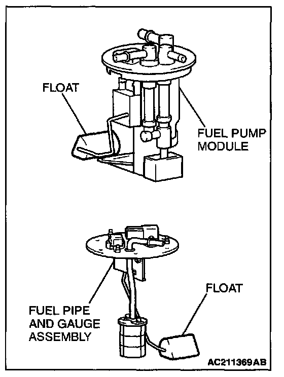 CAUTION: When withdrawing the fuel pipe and gauge assembly and fuel pump module from the fuel tank, be careful not damage the sensor unit and the float.