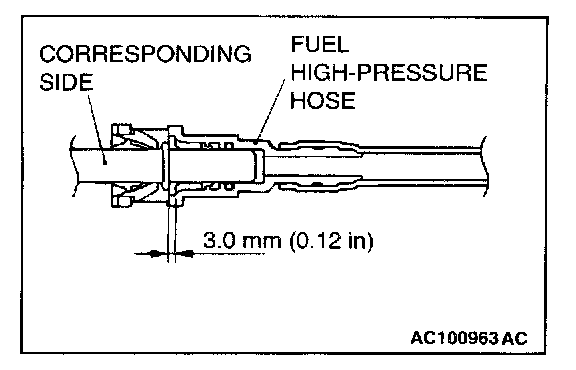 CAUTION: After connecting the quick release joint of the fuel high- pressure hose, pull the joint lightly away from the quickeners joint to confirm that it is secure. In addition, confirm that there is a play of approximately 3.0 mm (0.12 inch) at the joint.