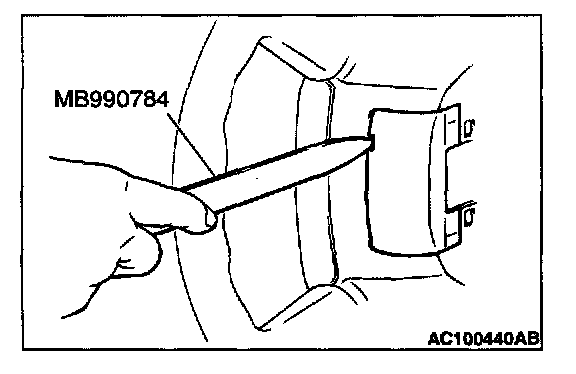 Insert the special tool MB990784 as shown in the illustration to remove the cover.