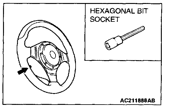 2. Insert the hexagonal bit socket into the arrow section in the figure. Completely loosen the bolt, and then remove the steering wheel air bag module assembly.