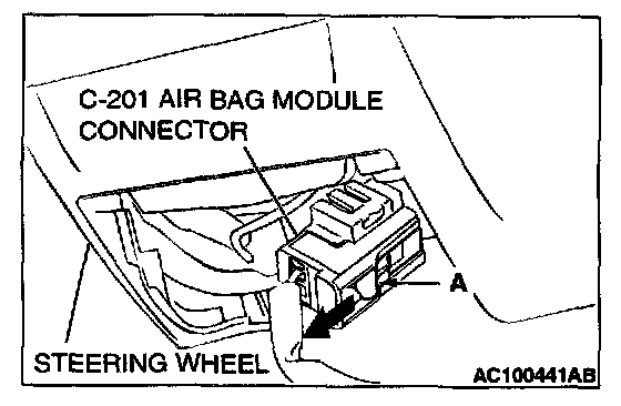 1. By sliding the A section (in the figure) of the air bag module connector in the arrow direction, disconnect the connector.