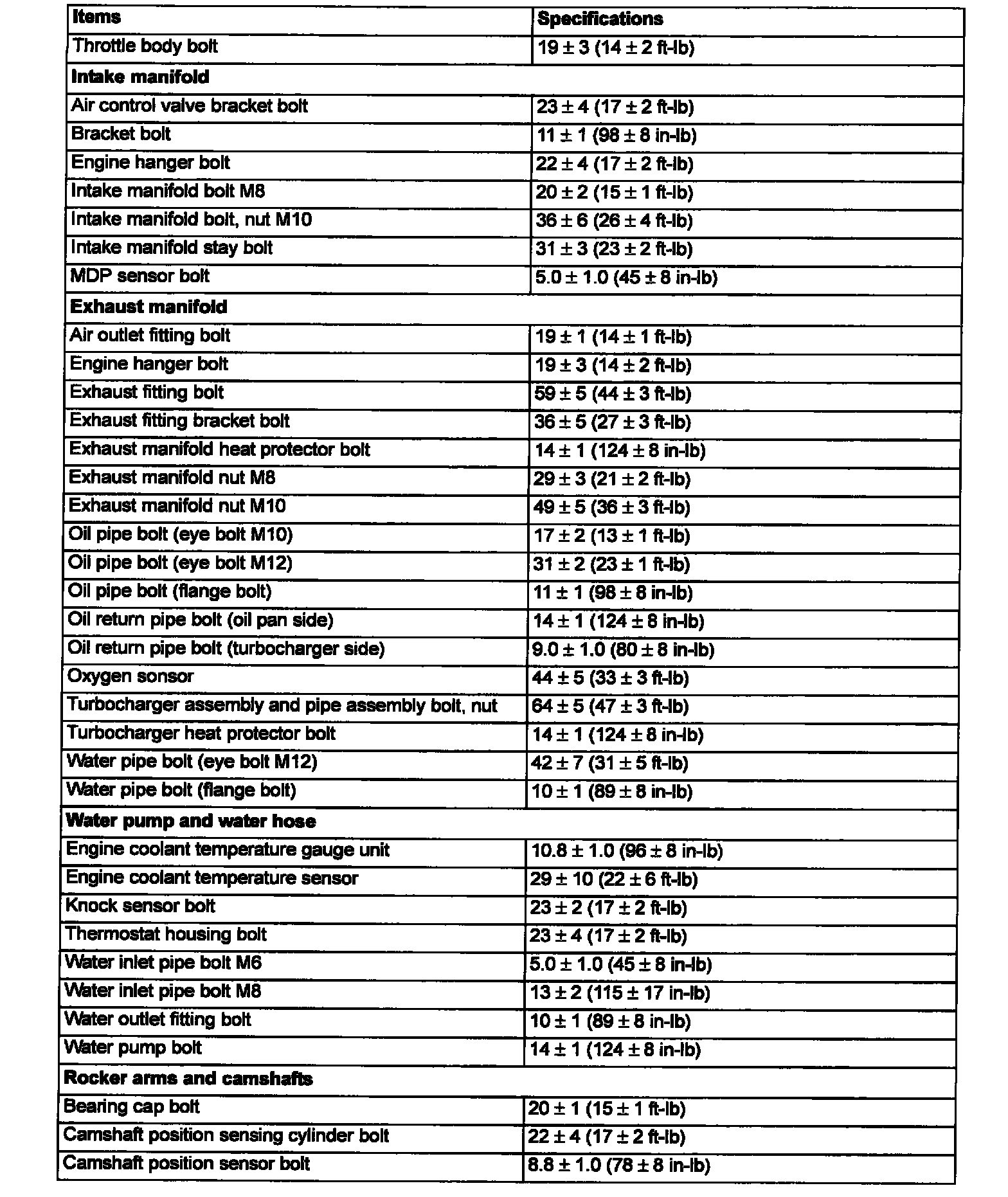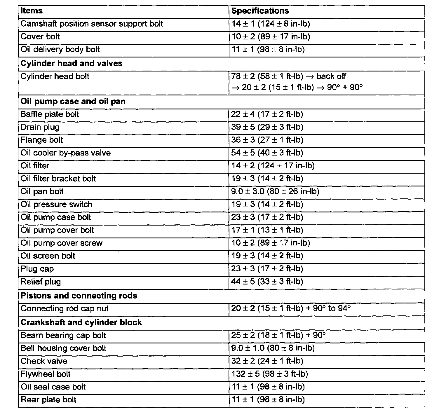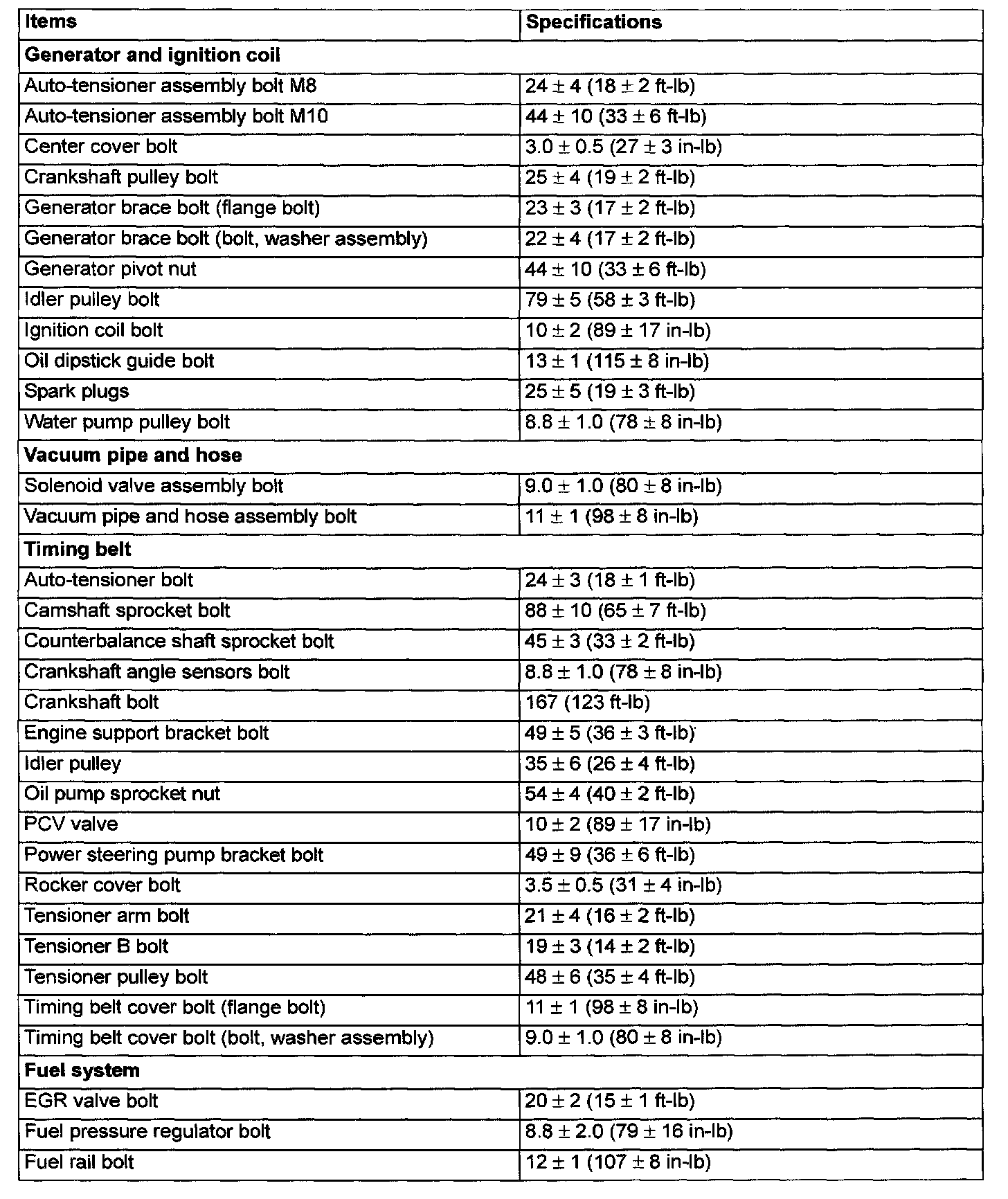 Fastener Tightening Specifications