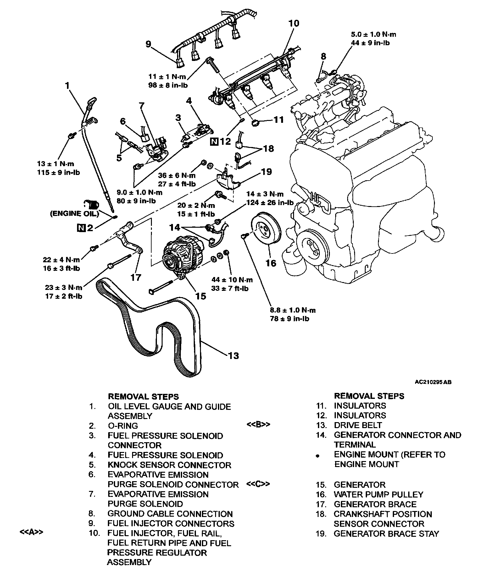Generator brace stay bolt (intake manifold bolt) 20 ± 2 N.m (15 ± 1 ft-lb)