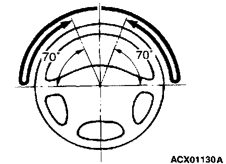 2. At a vehicle speed of approximately 35 km/h (22 mph), turn the steering wheel 90 degrees. hold a few seconds, then release. If the steering wheel then returns 70 degrees or more. the return can be judged satisfactory.