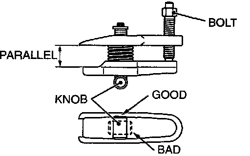 2. Turn the bolt and knob as necessary to make the jaws of special tool MB991897 parallel, tighten the bolt by hand and confirm that the jaws are still parallel.
