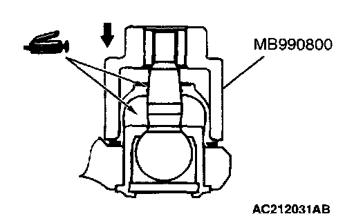 3. Using the special tool MB990800, punch the dust cover until it contacts the snap ring.