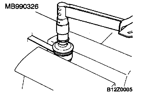 1. After shaking the ball joint stud several times, install the nut to the stud and use special tool MB990326 to measure the turning torque of the ball joint.
