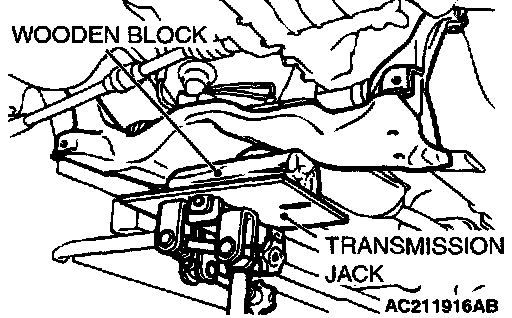 1. Use a transmission jack to hold the crossmember, remove the crossmember mounting nuts and bolts.