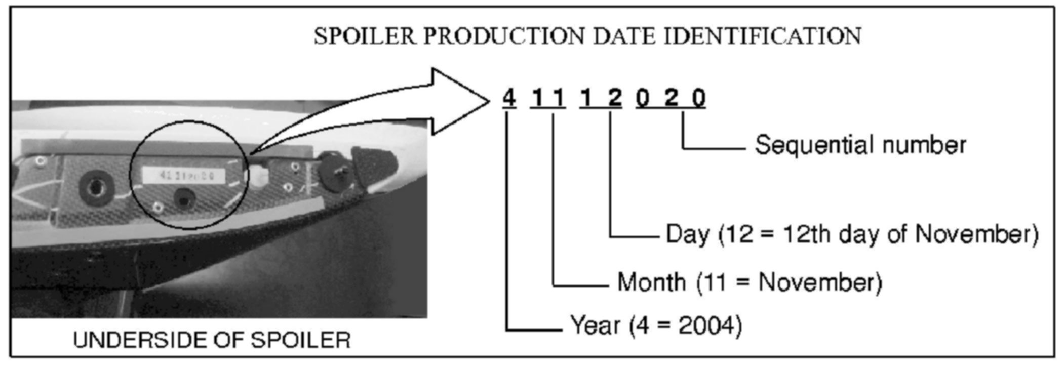 2003-2005 Lancer Evolution vehicles with spoilers produced before 7/28/05 (see spoiler identification shown)