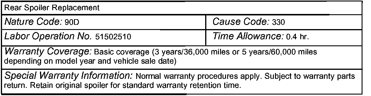 The clear coating on the rear spoiler may flake off when exposed to sunlight for extended periods of time. If a customer complains of this condition, replace the spoiler, using the appropriate replacement spoiler listed below. Paint the spoiler as necessary to match the vehicle body color.