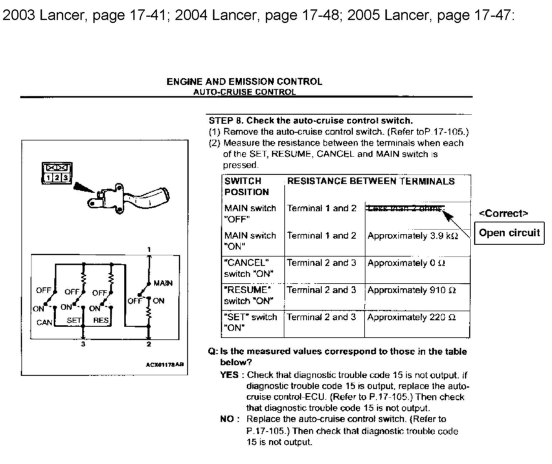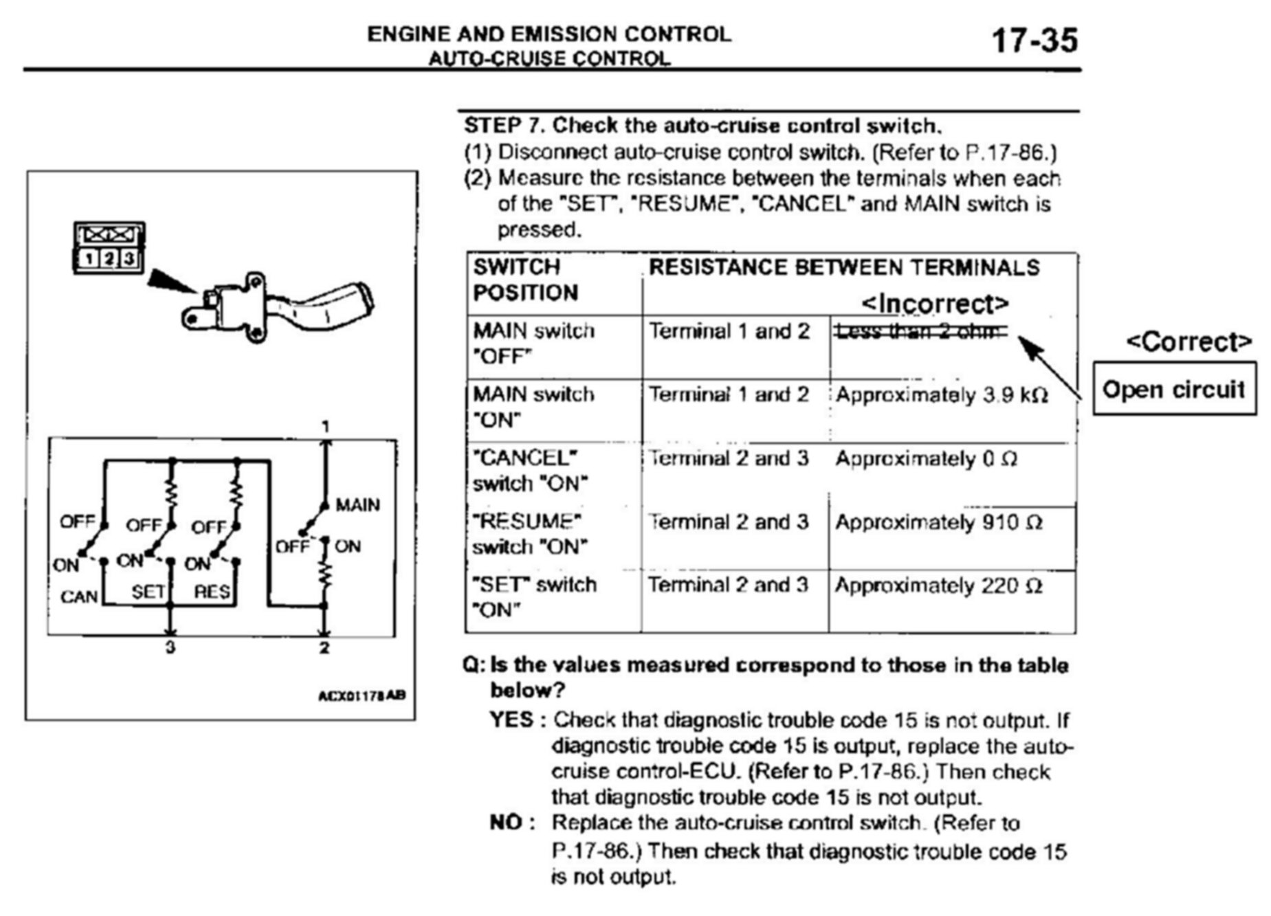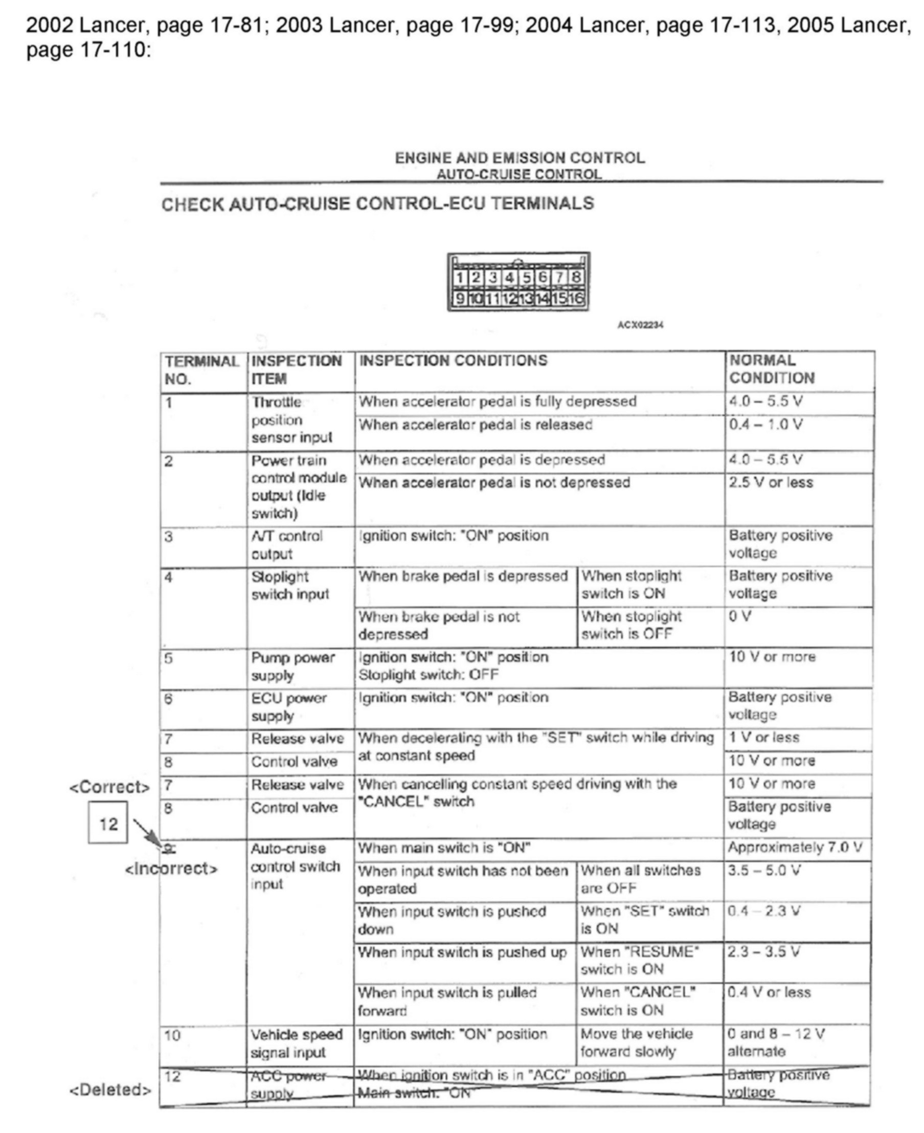 CRUISE CONTROL DIAGNOSIS - SERVICE MANUAL REVISION