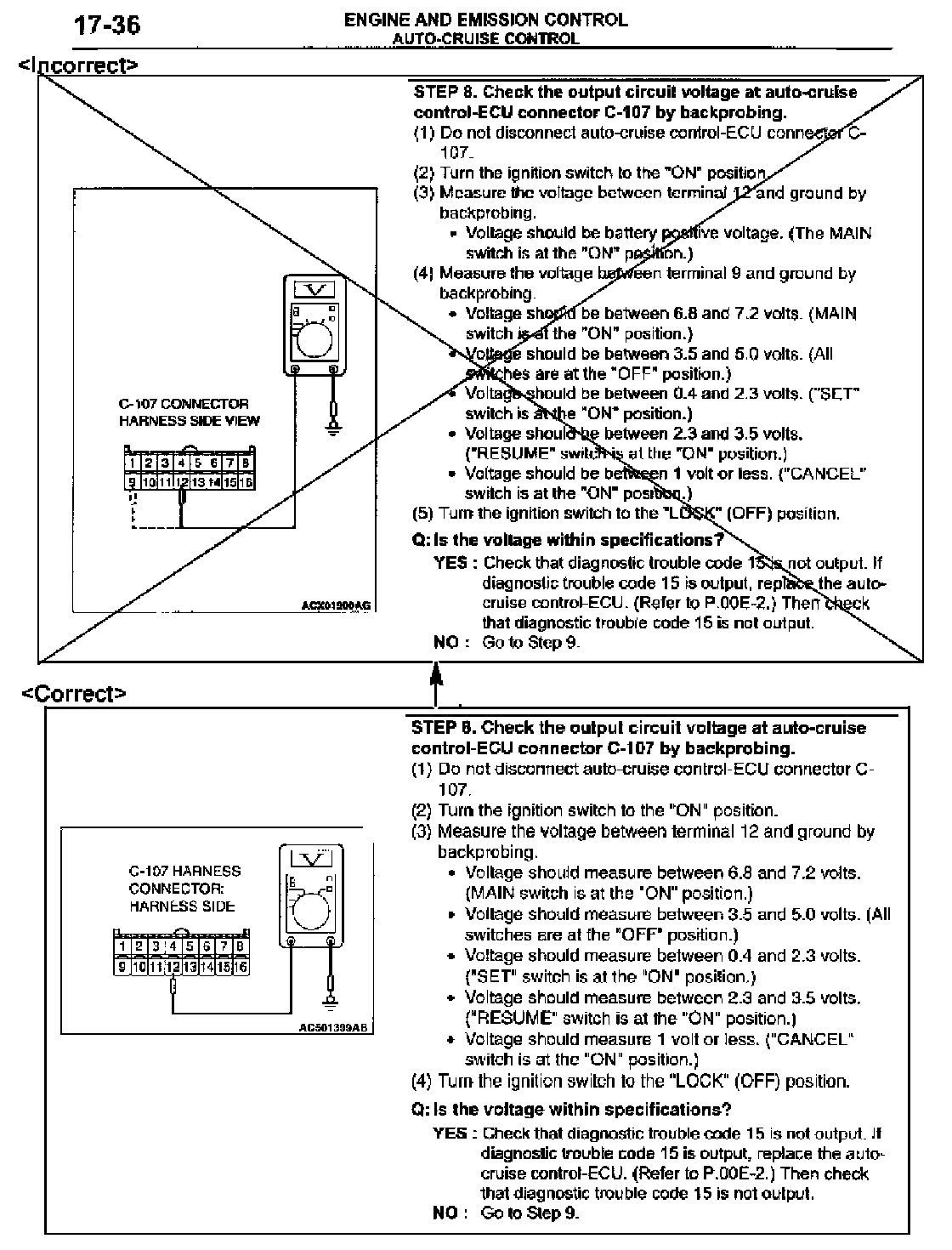 Cruise control system diagnosis procedures are incorrect in the affected service manual pages. This bulletin contains corrected cruise control diagnosis procedures.