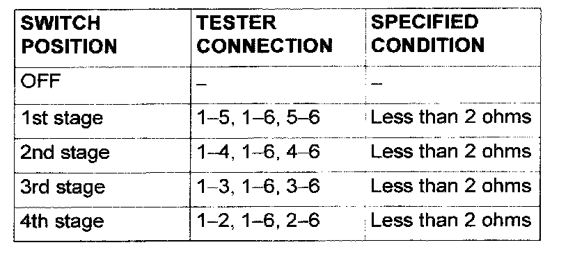This figure illustrates a complex switch. The continuity between terminals at each position is as indicated in the table.