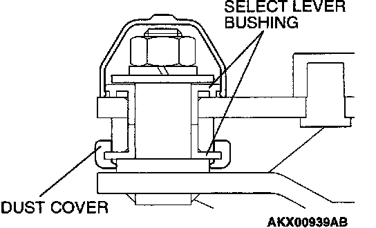 Make sure the dust cover and select lever bushing installation direction is correct, and distinguished parts are correctly assembled. Refer to the figure shown.
