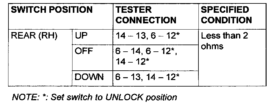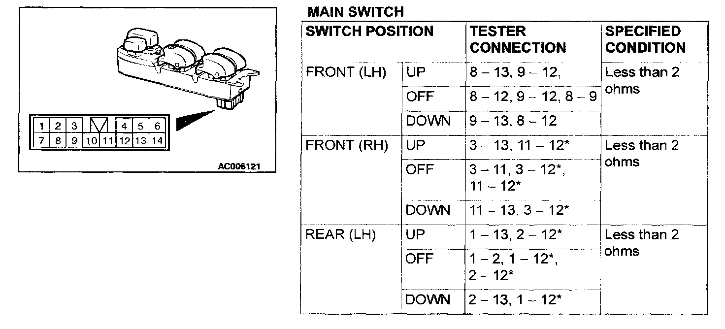 Power Window Switch Continuity CheckPower Window Main Switch: