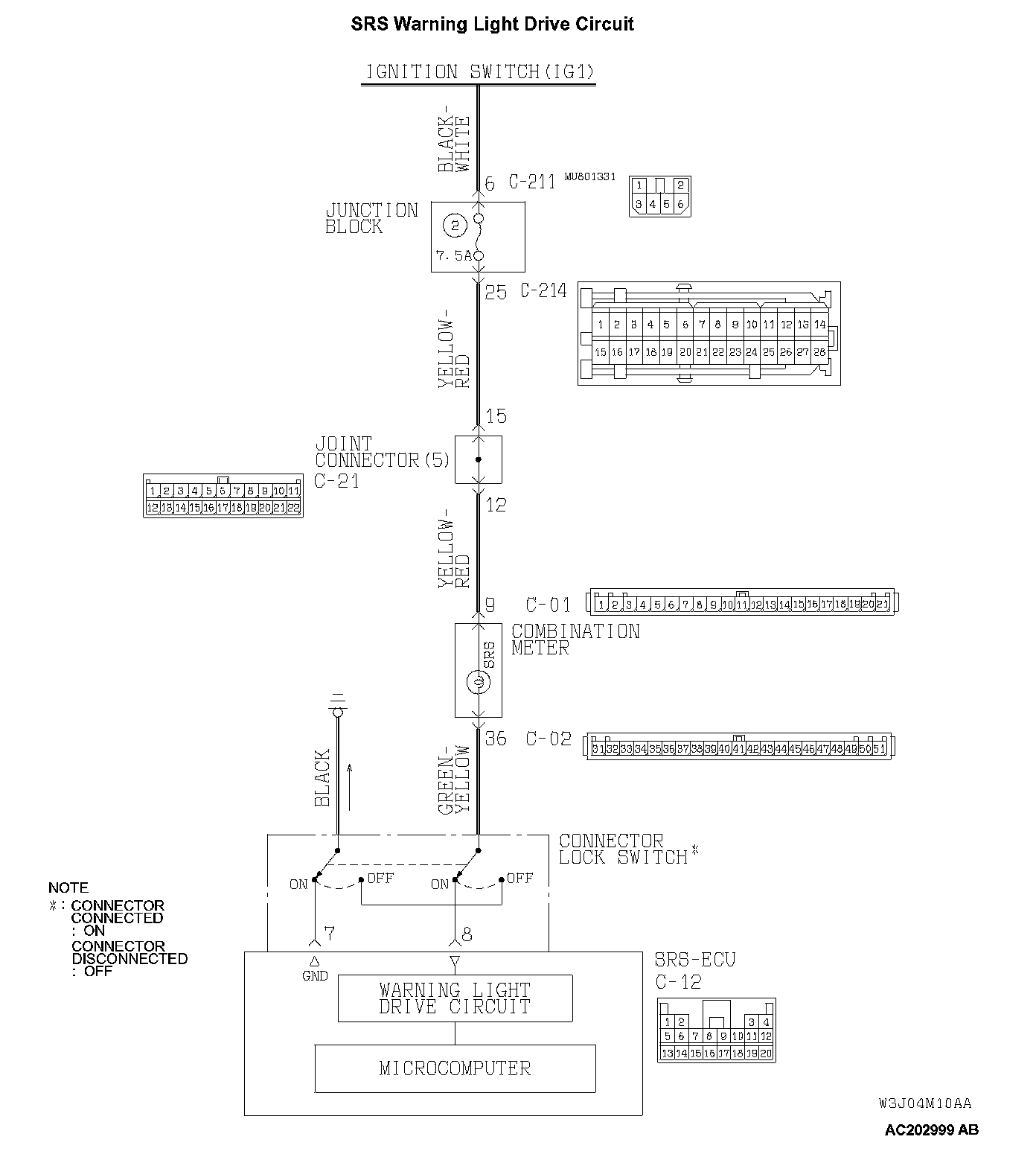 SRS Warning Light Drive Circuit System Fault 1 (Light does not Switch Off.)SRS Warning Light Drive Circuit Part 1: