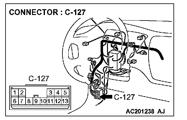 NO: Repair the harness wire between SRS-ECU connector C-12 and combination meter connector C-02. Then go to Step 4.