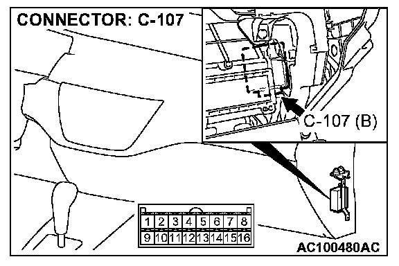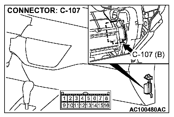 STEP 3. Check auto-cruise control-ECU connector C-107 for loose, corroded or damaged terminals, or terminals pushed back in the connector.