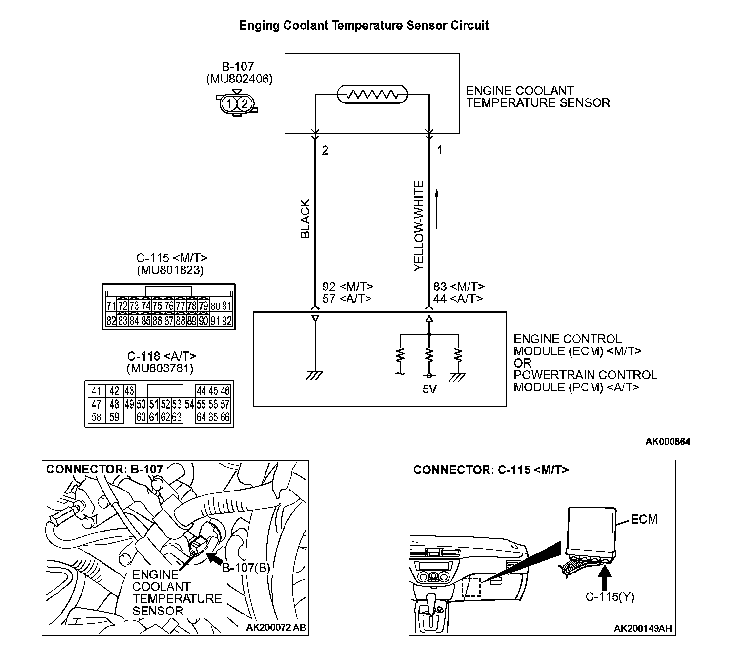 1. Disconnect the engine coolant temperature sensor connector B-107.