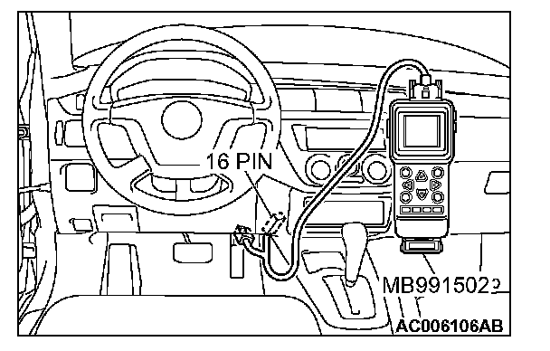 1. Connect scan tool MB991502 to the data link connector.