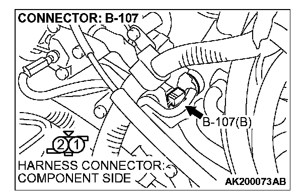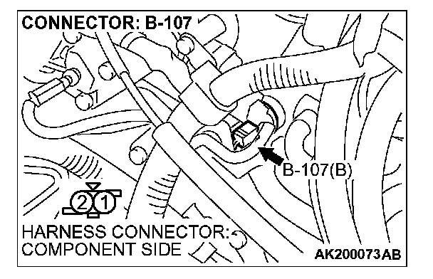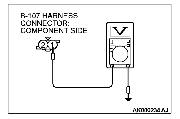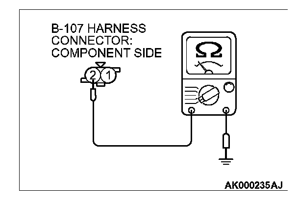 1. Disconnect connector B-107 and measure at the harness side.