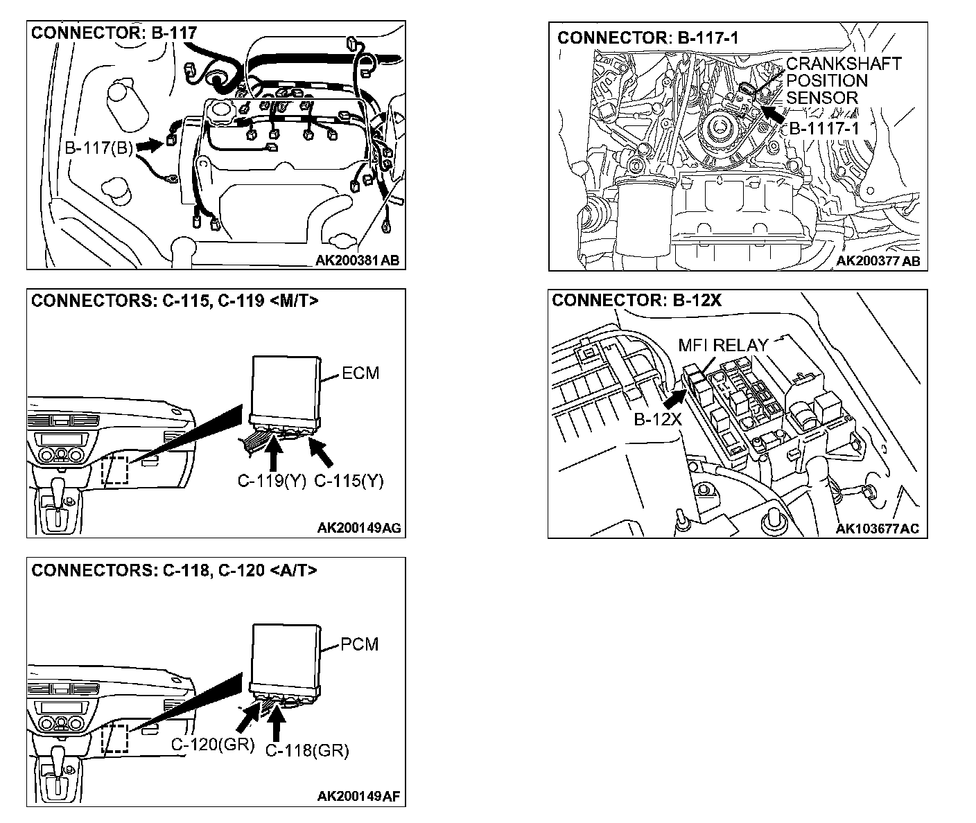 STEP 5. Check connector B-117 at the crankshaft position sensor for damage.