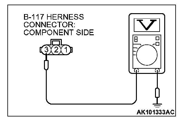 1. Disconnect connector B-117 and measure at the harness side.