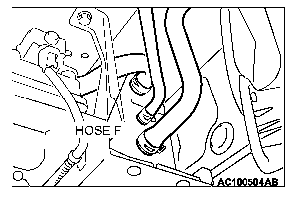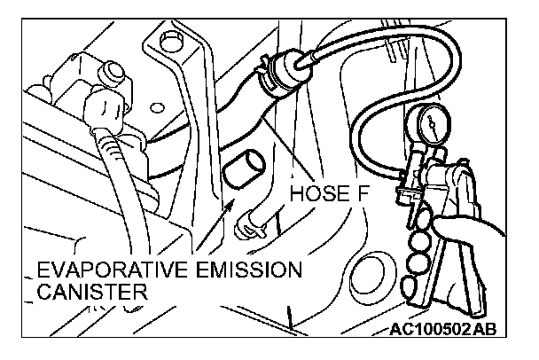 2. Disconnect hose F from the evaporative emission canister side, and connect a hand vacuum pump.