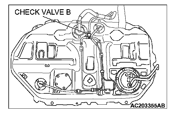 NO: Replace check valve B, and reinstall the fuel tank and the fuel filler neck protector. Refer to Fuel Tank. Go to Step 15.