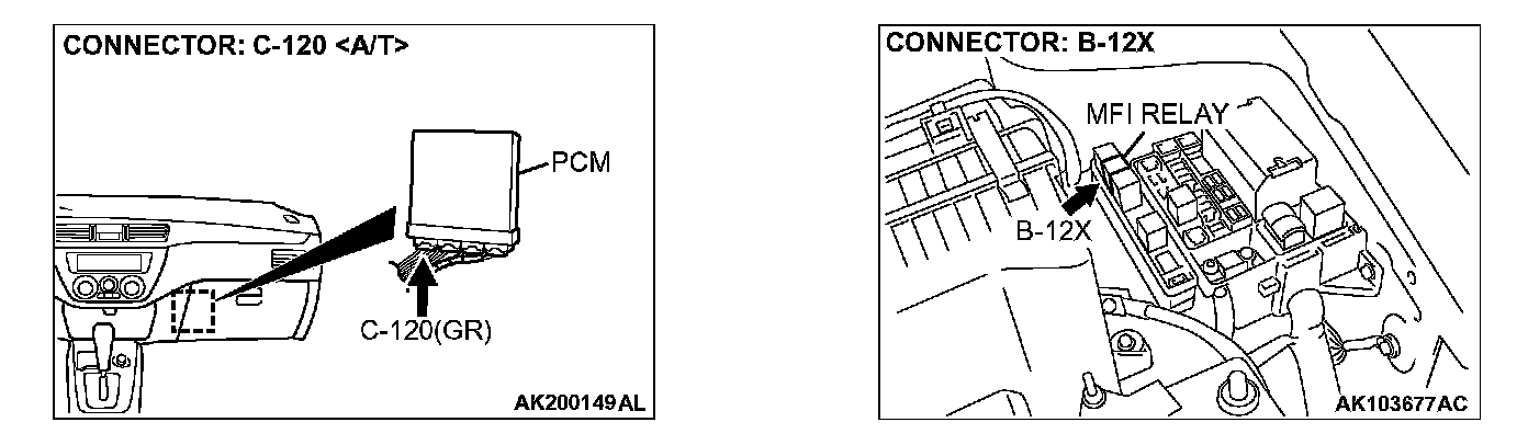 STEP 5. Check connector B-12X at MFI relay for damage.