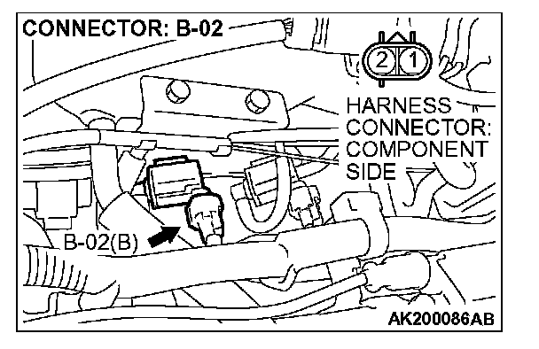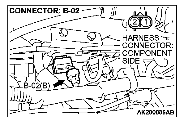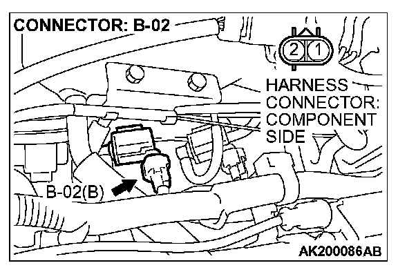 STEP 2. Check connector B-02 at the evaporative emission purge solenoid for damage.