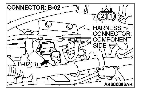 STEP 4. Measure the power supply voltage at evaporative emission purge solenoid harness side connector B-02.