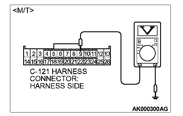 STEP 6. Measure the power supply voltage at ECM connector C-121