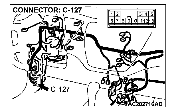 4. Connect special tool MB991658 to both halves of connector D-09.