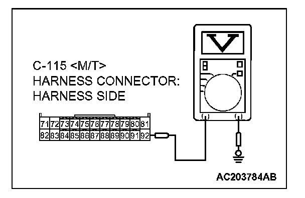 3. Measure the voltage between connector C-115 terminal 92