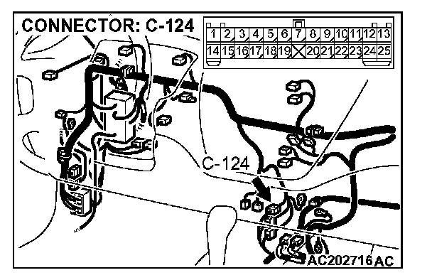 STEP 16. Check intermediate connectors C-124, C-127 and D-14, and ECM connector C-115