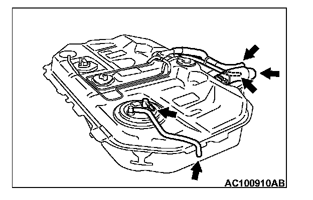2. Plug the filler hose, fuel pump feed nipple, return hose, hose L and hose H connected to the fuel tank.