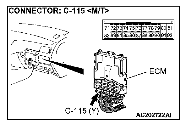 STEP 17. Check the harness wire between ECM connector C-115 terminal 92