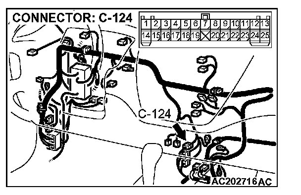 STEP 16. Check intermediate connectors C-124, C-127 and D-14, and ECM connector C-115