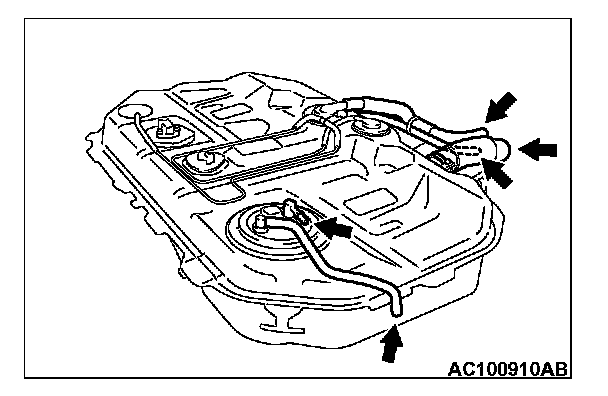 2. Plug the filler hose, fuel pump feed nipple, return hose, hose L and hose H connected to the fuel tank.