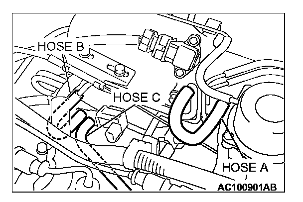 STEP 3. Check for leaks in evaporative emission system hoses A through C. Use a hand vacuum pump to test each hose from hose A to hose C.