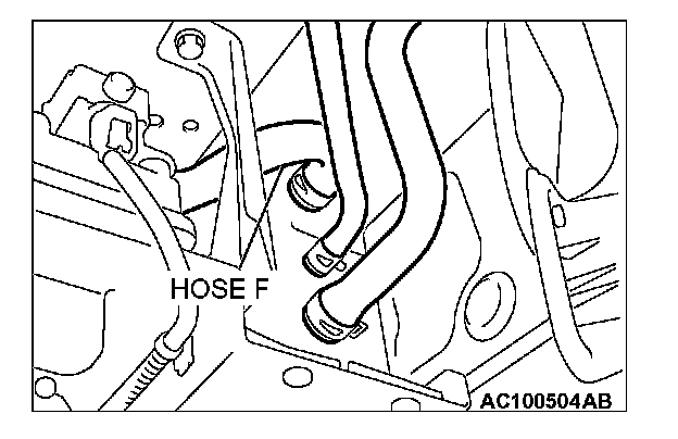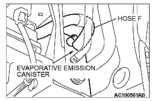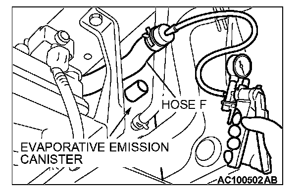 2. Disconnect hose F from the evaporative emission canister side, and connect a hand vacuum pump.