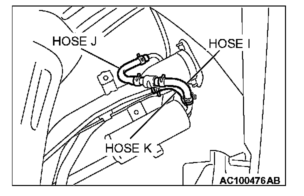 2. Perform a leakage test with a hand vacuum pump on each hose from hoses G, I, J and K.
