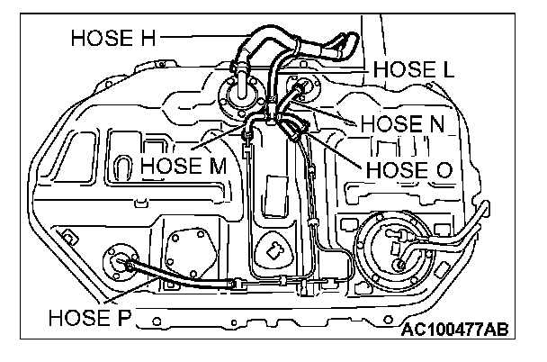 3. Plug the fuel pump feed nipple, return hose, hose L and hose H connected to the fuel tank.